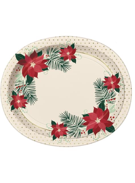 Revisão do produto: "8 pratos ovais com flores manhã-de-pásco (31x25 cm) - Red & Gold Poinsettia"