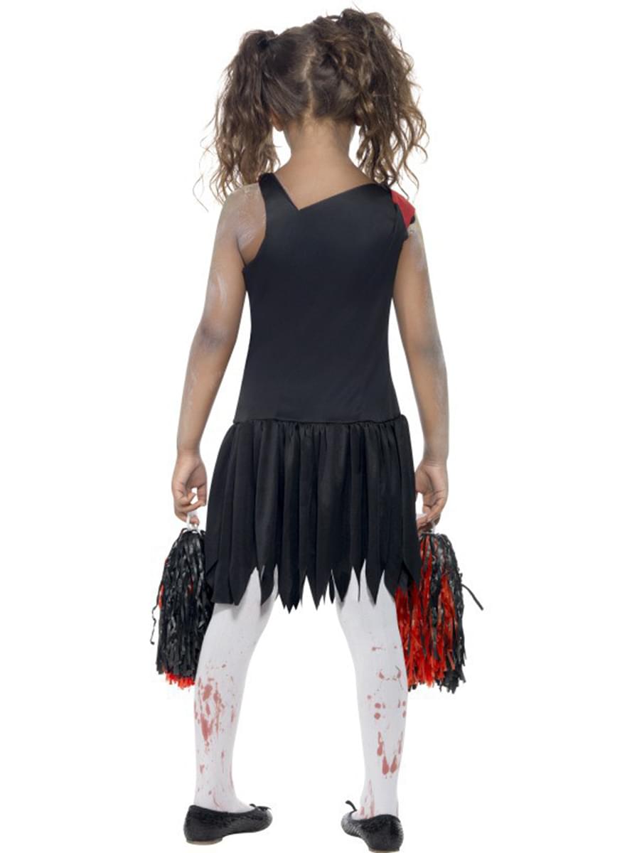 Este sinistro fato de animadora zumbi inclui um vestido vermelho e preto e uns pompons a combinar.