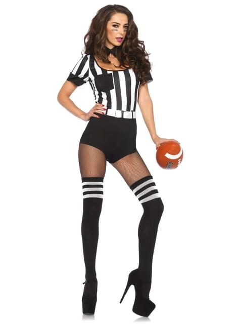 Fato de árbitro branco e preto sexy para mulher