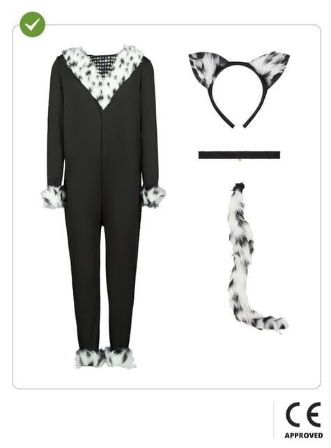 Inclui: Macacão, gargantilha com guizo e bandolete com orelhas