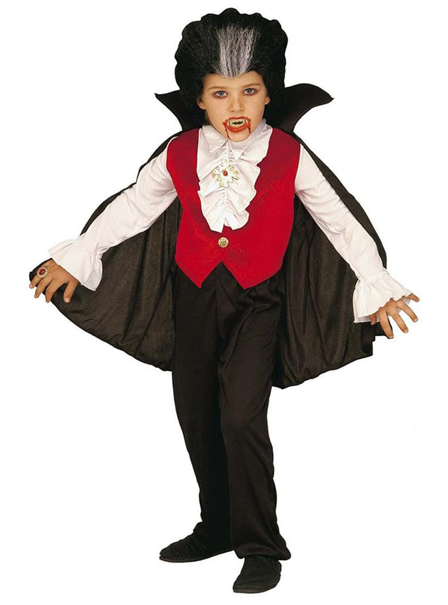 Inclui: camisa com colete, folhos, calças e capa com gola