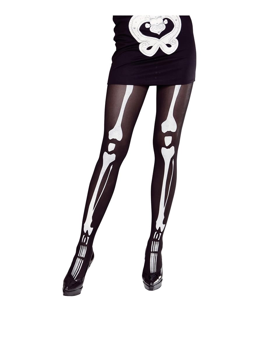 Meias-calças pretas de caveira