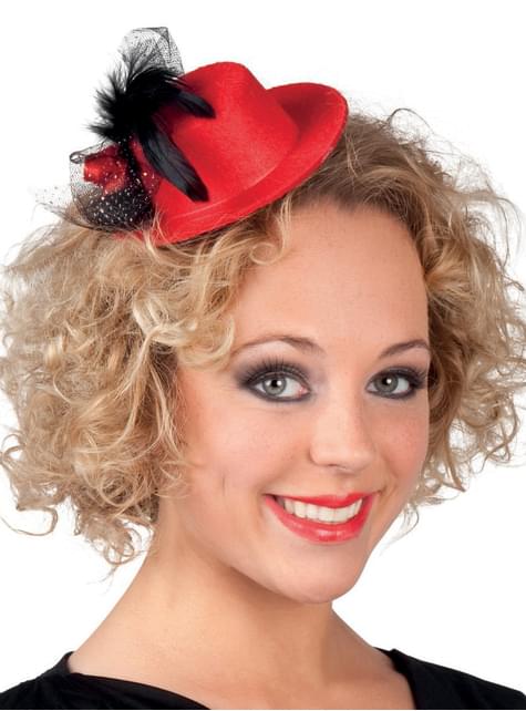 Mini chapéu de jovem dos anos 20 vermelho para mulher