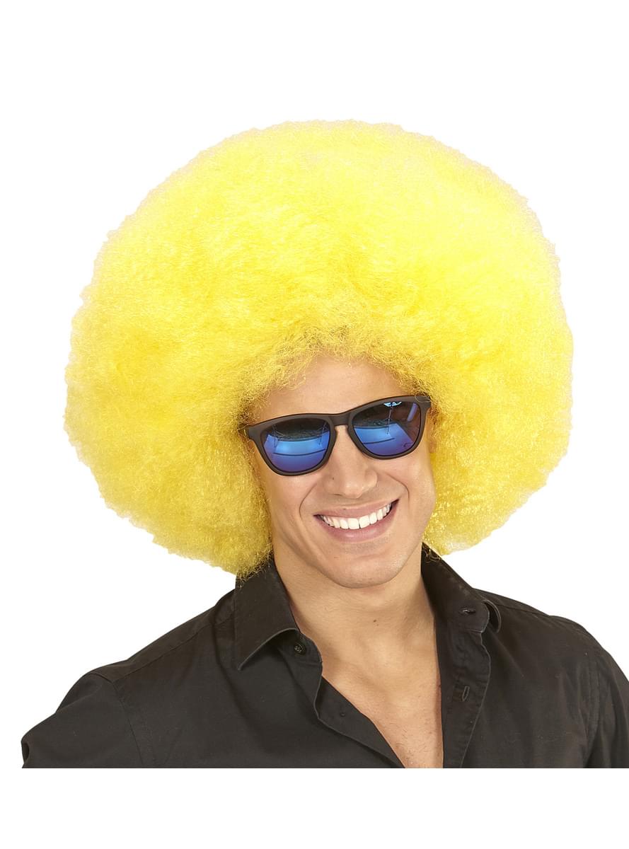 Peruca afro gigante amarela deluxe em bolsa
