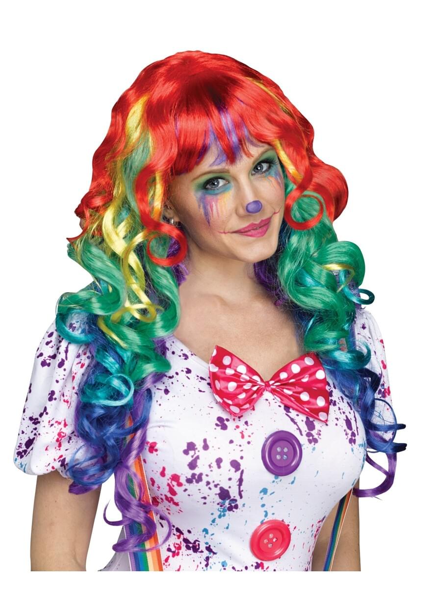Peruca de arco-íris com caracóis para adulto