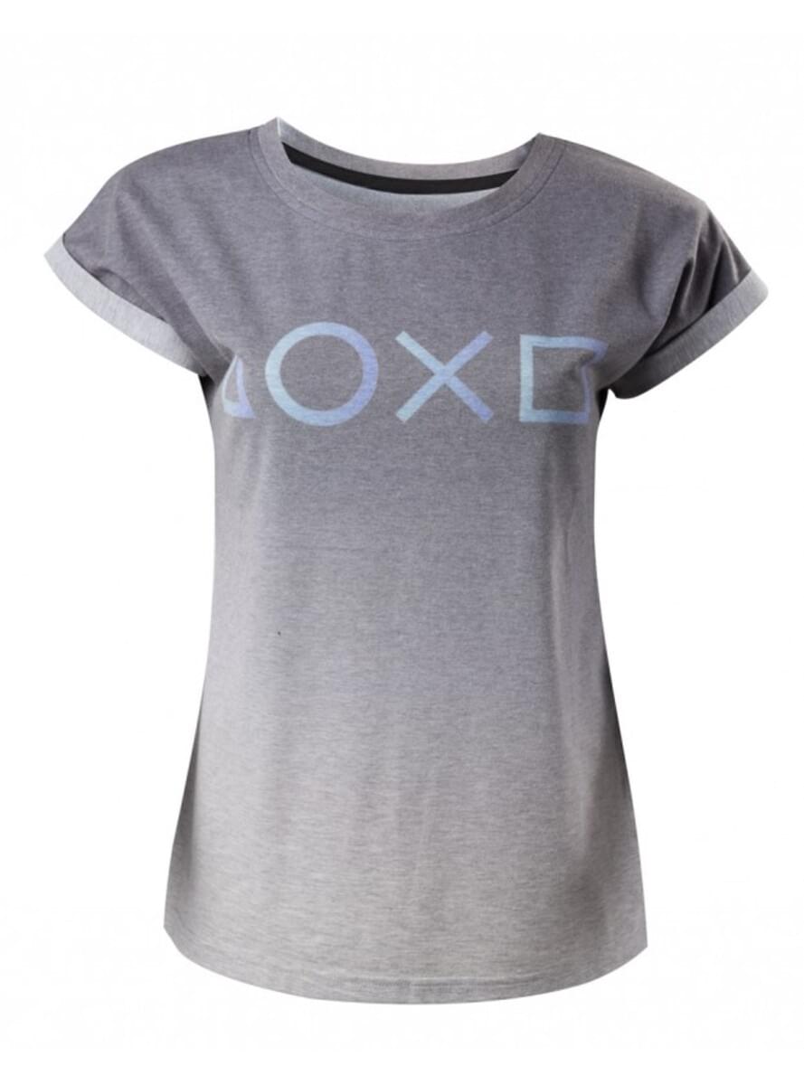 T-shirt de botões PlayStation cinzenta para mulher