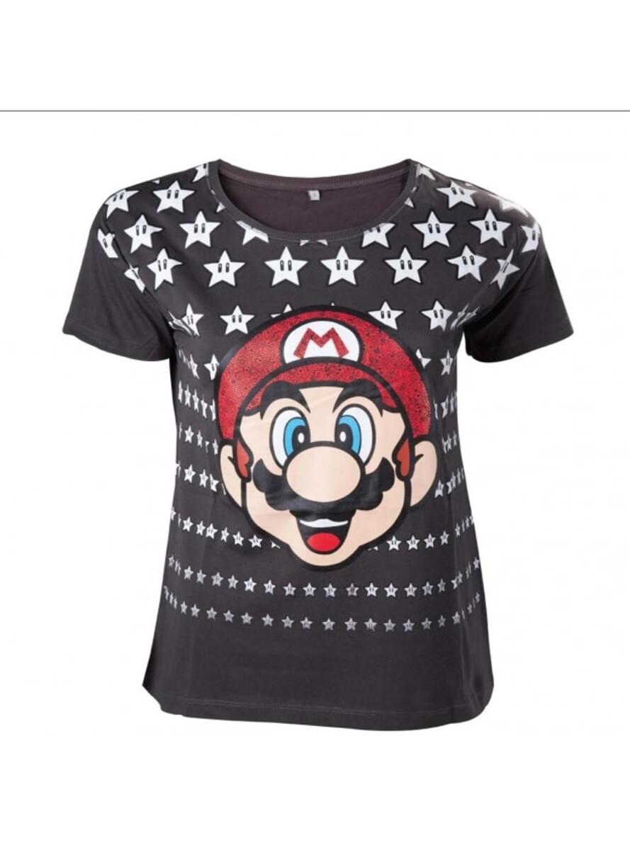 T-shirt de Mario Bros preta para mulher